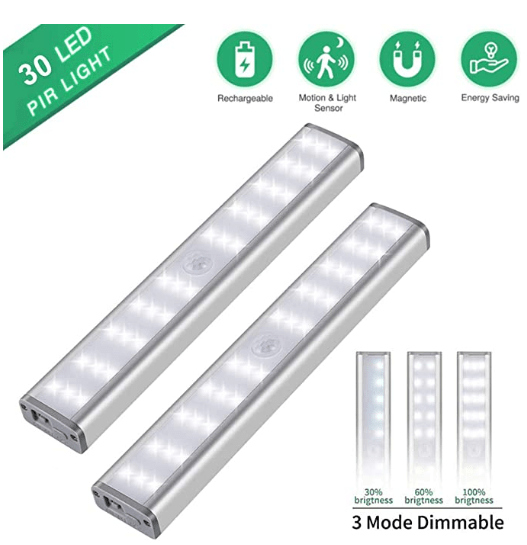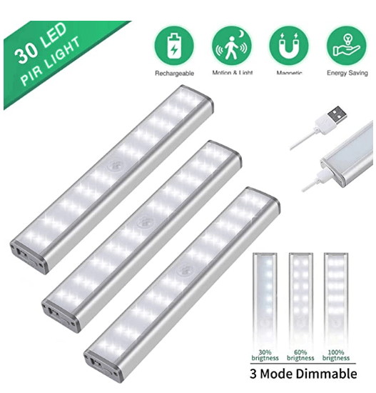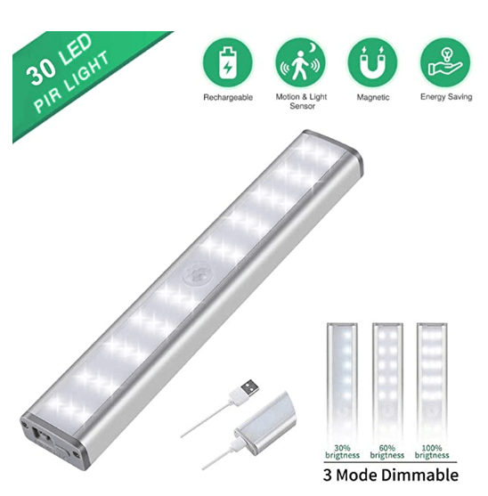 ✓ 30 LED: 18,8 x 3,8 x 3 cm, Eingebauter 800-mAh-Akku, hält 30 Tage ( 5 Mal am Tag) nach vollständiger Aufladung im Bewegungssensormodus, 3 Stunden im Always-on-Modus